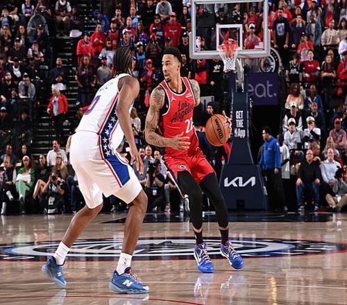 本场比赛中,快船虽然输掉了比赛,但是球队的替补侧翼新星乔丹-米勒(Jordan Miller)的表现还是值得肯定的。米勒全场出场27分44秒,投篮10中9,三分线外1中0,罚球4中3,得到了21分4篮板2助攻1抢断的数据,还有3次失误,正负值为+2。米勒在进攻端的效率简直是高到离谱,他的突破和终结能力都非常出色,他在中距离投篮方面的稳定性同样不俗,他的出手次数并不多,但是他也是抓住了不多的机会得到了不少分数,展现出了自己应有的实力和价值。米勒在防守端的表现其实同样是相当不错的,他也是证明了自己有着不俗的防守能力。米勒也算是本场比赛中快船为数不多的亮点了,他在攻防两端都起到了很好的效果,可惜其他球员的表现确实是不太理想,米勒也没有办法帮助球队扭转局面。